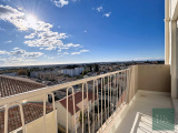 Le séjour lumineux ouvre sur un balcon avec une vue imprenable sur Béziers, la mer et les Pyrénées.